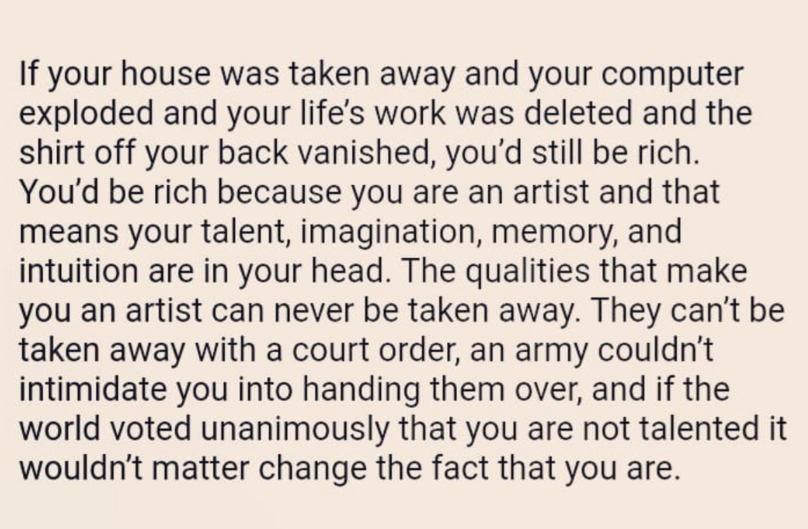 OK, not all of these posts will be 10,000 words long. :) Sometimes, I’ll find something that really stands out and I’ll need to share it. This is something from AdviceForArtists— an account that I found on Instagram a couple of weeks ago. Not all of his posts are art related, but for the ones like this, they really speak volumes.